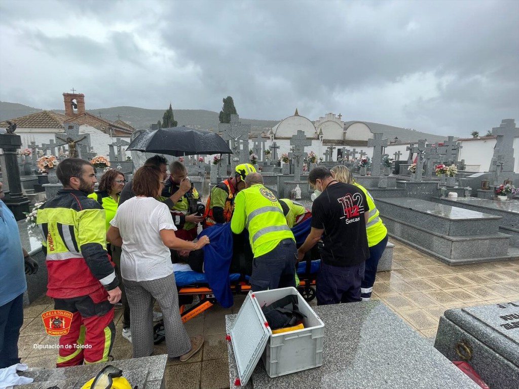 El suceso ha obligado a movilizar a efectivos de bomberos, que acudieron al cementerio de la localidad para llevar a cabo las labores de rescate y salvamento en coordinación con los servicios sanitarios. La víctima ha sido inmovilizada y colocada sobre un tablero espinal para evitar lesiones durante la extracción.