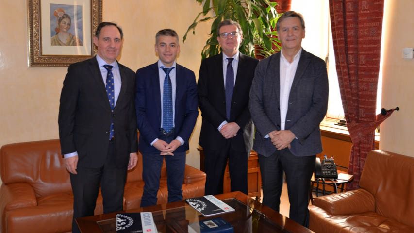 El rector de la Universidad de Castilla-La Mancha (UCLM), Miguel Ángel Collado, acompañado por el vicerrector de Economía y Planificación, Manuel Villasalero, ha mantenido una reunión con el director de la Oficina de Transformación Digital de Castilla-La Mancha, Manuel Roque, y el presidente del Colegio Oficial de Ingenieros Industriales de Ciudad Real, Andrés Gómez, para analizar nuevas líneas de trabajo y colaboración entre el órgano colegiado y la institución académica.