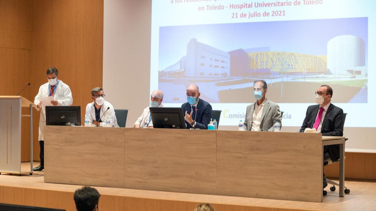 El acto ha estado presidido por el director general de Recursos Humanos, Íñigo Cortázar, que ha estado acompañado por el director subgerente del Complejo Hospitalario Universitario de Toledo y el gerente de Atención Primaria de Toledo, los doctores Javier Gil y Javier Rodríguez respectivamente, junto a los jefes de estudios del centro hospitalario y de Atención Primaria, Agustín Julián Jiménez y Alejandro Villarín, respectivamente.
