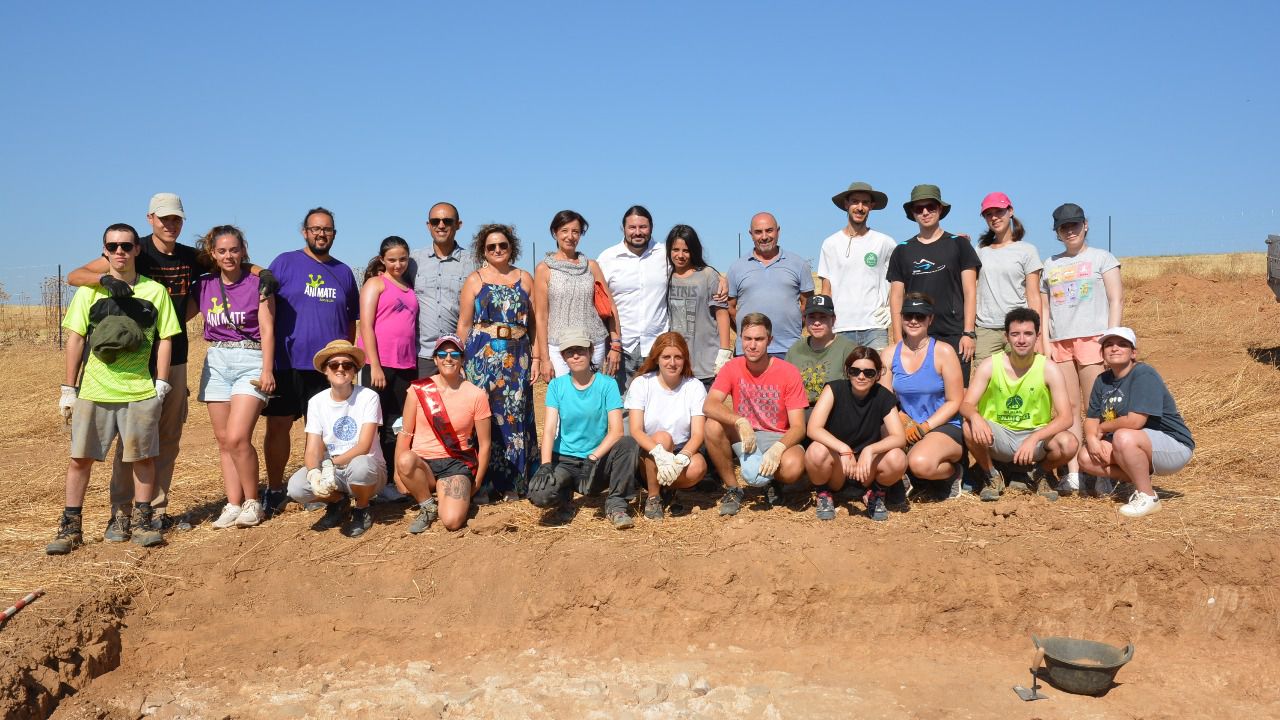 Ana Gómez, Cristina Cebas, Luis Vicente Arellano y Diego Ralo tuvieron ocasión de felicitar a la arqueóloga que dirige la excavación y a los 23 jóvenes que participan en los trabajos de descubrimiento de la Villa Romana de Rielves y que forman parte del programa de voluntariado “Veranos Jóvenes” que desarrolla el Gobierno de Castilla-La Mancha.