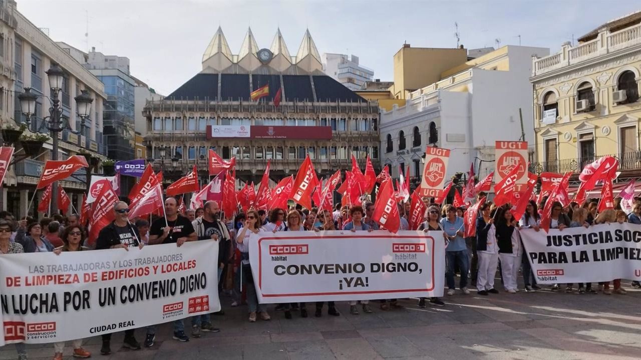 La concentración de este jueves de las trabajadoras de la Limpieza de Ciudad Real pone "punto y seguido" a las movilizaciones protagonizadas los pasados días 20, 21 y 25 por sus compañeras de Toledo, Cuenca y Guadalajara, cuyos convenios colectivos se encuentran también bloqueados, al igual que todos los convenios provinciales del sector de la limpieza pendientes de renovación este año en el conjunto del país, han recordado en nota de prensa los sindicato.