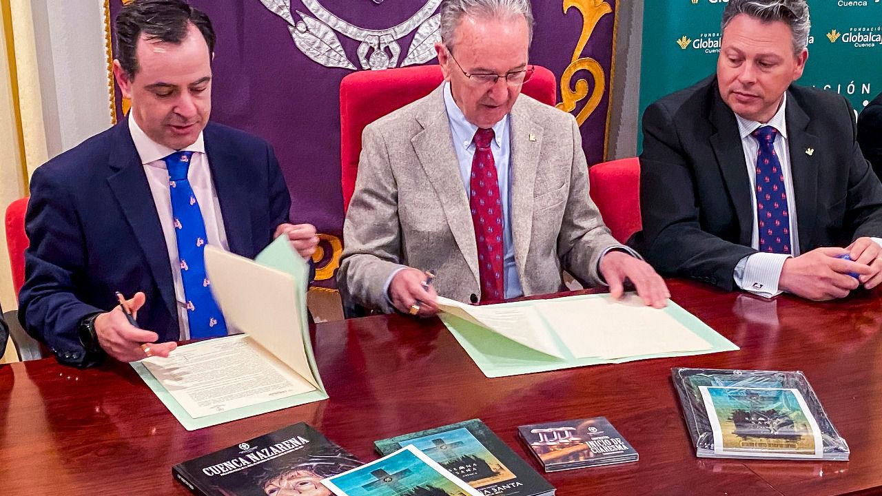 Ambos convenios han sido firmados por el presidente de la entidad, Carlos de la Sierra, junto a Jorge Sánchez Albendea, presidente de la Fundación del Museo y de la Junta de Cofradías de Cuenca.