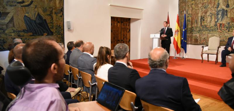 Con la toma de posesión celebrada esta mañana en el Palacio de Fuensalida, la Vicepresidencia primera pasa a ocuparla desde hoy José Luis Martínez Guijarro, mientras que la Vicepresidencia segunda recae en el secretario general en la región de Podemos, José García Molina, y la Consejería del Plan de Garantías Ciudadanas, de nueva creación, en Inmaculada Herranz Aguayo, también de la formación de Pablo Iglesias.