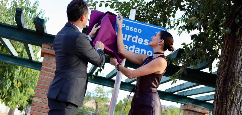 El acto ha comenzado con el descubrimiento de las dos placas con su nombre al inicio y al final del paseo, que también cuenta con un mural diseñado por el artista Javier Alcolea. A continuación, las gimnastas del Club Venus y del Club Tolelum han hecho un pasillo a Lourdes Mohedano con cintas para acceder al pabellón Gonzalo Pérez de Vargas, donde posteriormente han ofrecido a los asistentes una exhibición.