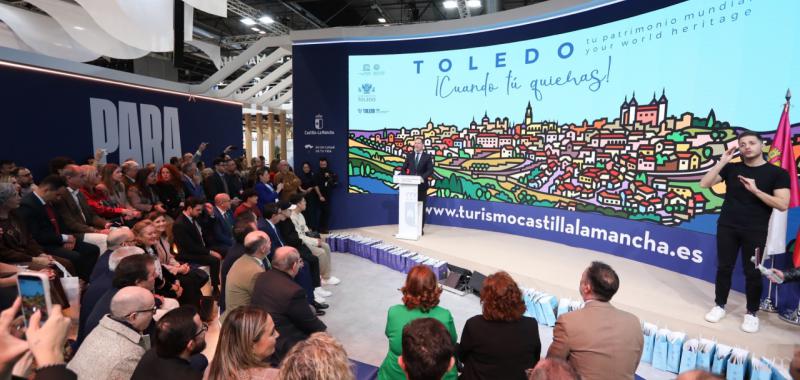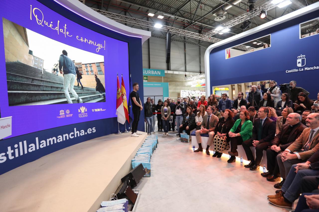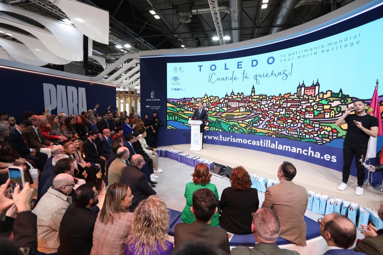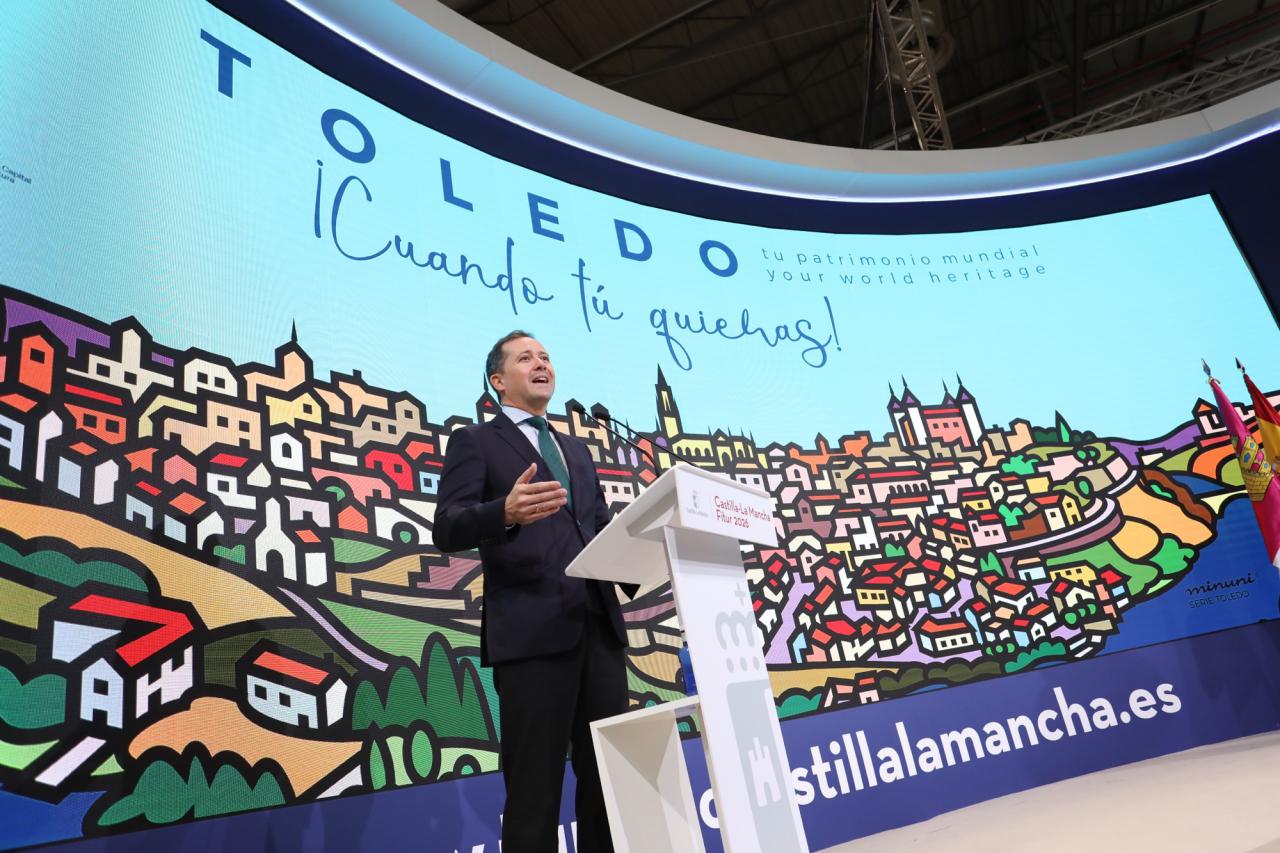 El alcalde de Toledo, Carlos Velázquez, ha presentado este sábado en la Feria Internacional del Turismo (FITUR), la campaña de turismo de la ciudad para el año 2026, en el marco de la celebración del Día de Toledo, dentro del stand de Castilla-La Mancha, donde ha subrayado que la nueva estrategia, “no solo define las acciones promocionales del año, sino la voluntad de lo que queremos ser como destino”.