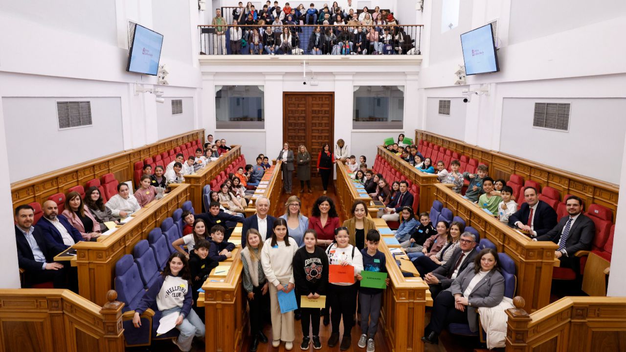 El Salón de Plenos del Convento de San Gil en Toledo ha acogido este jueves la actividad ‘Diputados y diputadas por un día’ que organiza cada año Aldeas Infantiles y en el que alumnado de cinco colegios de la región ha debatido y votado propuestas, emulando el funcionamiento habitual de una cámara legislativa, en este caso en torno al uso de las nuevas tecnologías en la infancia.