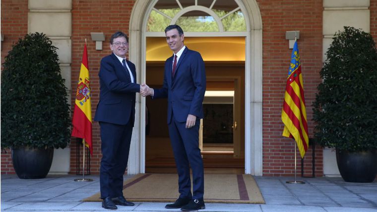 El presidente del Gobierno, Pedro Sánchez, saluda a Ximo Puig, presidente de la Generalitat Valenciana, a su llegada a La Moncloa. (Foto: Pool Moncloa/Fernando Calvo)